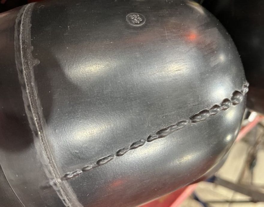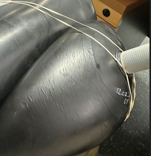 We received the customers’ reports of bladder defects during their accumulator maintenance services recently. They look similar with visible blisters along a line on the bladders.